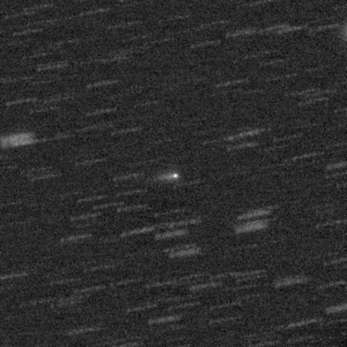 Interstellarer Komet 3I/ATLAS am 19.01.2026, f = 300 mm, QHY294C, IRB-Filter, 04:30 UT, 01:30 Stunden Belichtungszeit, 70% der Originalauflösung. Der Komet ist sehr lichtschwach geworden, zeigt aber weiterhin einen kurzen Schweif.