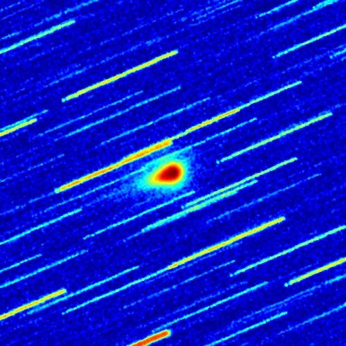 Interstellarer Komet 3I/ATLAS am 19.01.2026, f = 300 mm, QHY294C, IRB-Filter, 04:30 UT, 01:30 Stunden Belichtungszeit, 70% der Originalauflösung. Der Komet ist sehr lichtschwach geworden, zeigt aber weiterhin einen kurzen Schweif.