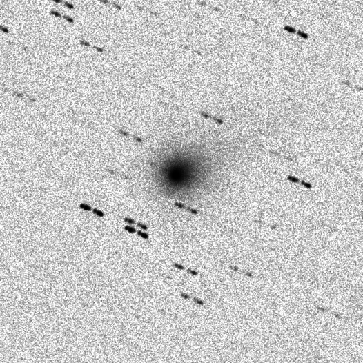 Komet C/2025 A6 (Lemmon) am 01.11.2025, f = 600 mm, DZK 33UX250, 570-nm-Orange-Kantenfilter, ca. 18:00 UT, 5:36 Minuten Belichtungszeit, im Vergleich zu den seit dem 17.10.2025 erstellten Aufnahmen. In der Zusammenstellung unten sind die Aufnahmeparameter der Kamera, die logarithmische Skalierung der Intensität und der Abbildungsmaßstab für alle Bilder identisch. Nach einer bis zum 17.10.2025 andauernden "Ruhephase" kam es im Zeitraum 17.-20.10.2025 zu einer schnellen Vergrößerung der Staubcoma und einer Aufhellung des Staubschweifs. In der darauffolgenden Woche (bis zum 27.10.2025) wurde der Schweif schwächer, die Staubcoma vergrößerte sich jedoch weiter. Einige Tage später (30.10.-01.11.2025) wurde der Staubschweif wieder heller, und die Staubcoma dehnte sich kontinuierlich aus. Diese Intensivierung der Staubkomponente ist wahrscheinlich auf die Annäherung des Kometen an die Sonne zurückzuführen, die zu einer Erwärmung der Oberfläche seines Kerns, zur Sublimation von Eis unter der Oberfläche und zur Freisetzung von Staubpartikeln aus dem Kern in die Coma und den Schweif führt. Die Entfernung des Kometen von der Sonne verringerte sich im Zeitraum 17.10.-01.11.2025 von 0.74 auf 0.56 AE, und das Perihel mit 0.53 AE Sonnenabstand wird am 08.11.2025 erreicht (JPL Horizons Ephemeris).